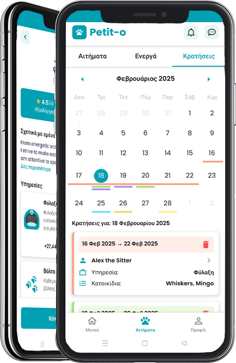 Η φροντίδα του κατοικιδίου σου δεν ήταν ποτέ πιο εύκολη. Ακολούθησε τρία απλά βήματα για να βρείς αξιόπιστους φροντιστές, να κάνεις ασφαλείς κρατήσεις και να απολαύσεις απόλυτη ηρεμία — όλα μέσα από την εφαρμογή Petit-o.